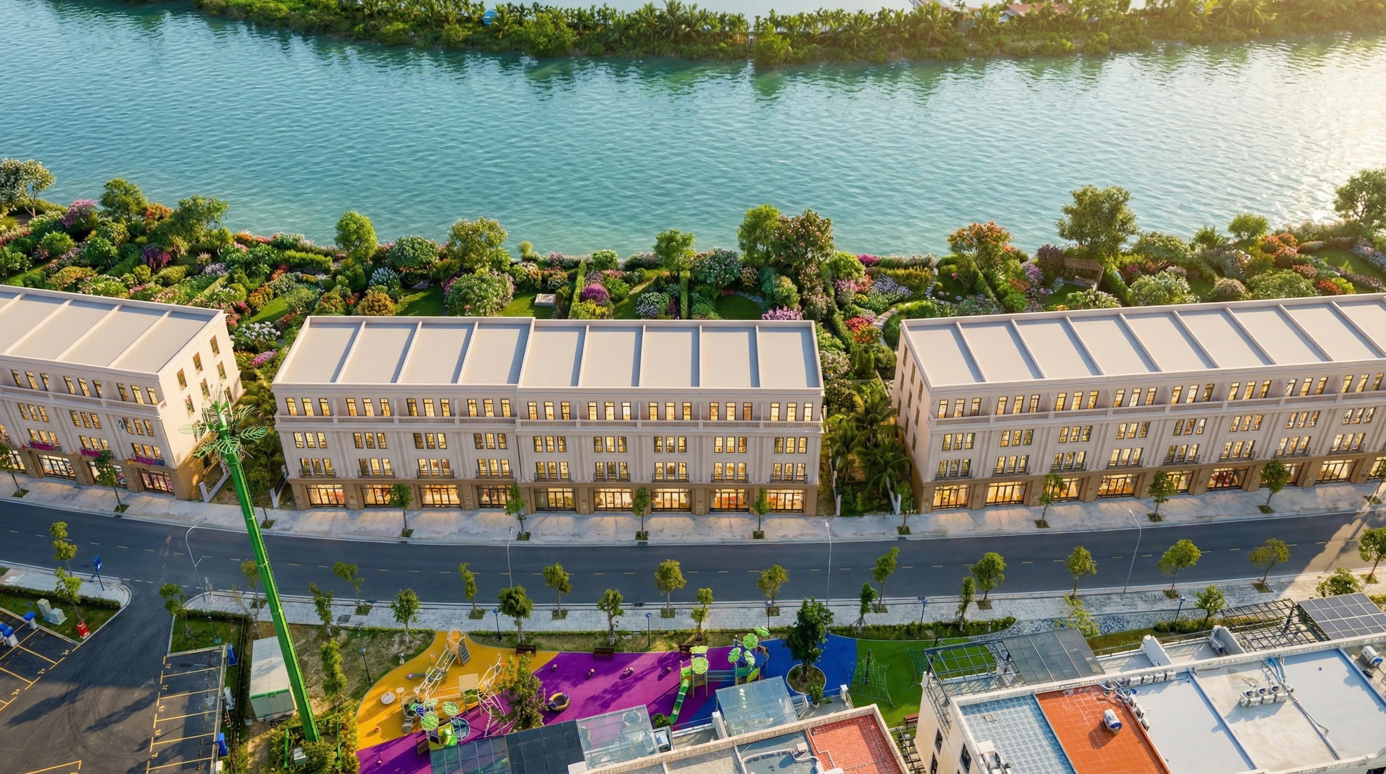 Xây dựng theo không gian mở để tất cả các cư dân sống tại đây có thể hòa hợp hơn với cuộc sống gần gũi với thiên nhiên. Đồng thời lựa chọn loại hình sản phẩm này khách hàng còn có cơ hội trải nghiệm nhiều hệ thống tiện ích sang trọng và đẳng cấp đặc biệt là công viên vui chơi bậc nhất.